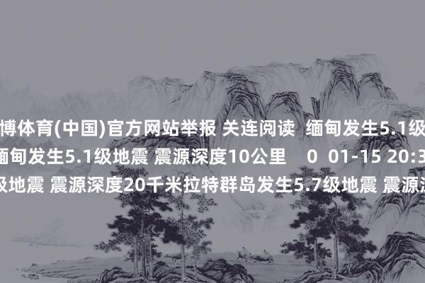 万博体育(中国)官方网站举报 关连阅读 缅甸发生5.1级地震 震源深度10公里缅甸发生5.1级地震 震源深度10公里 0 01-15 20:38 拉特群岛发生5.7级地震 震源深度20千米拉特群岛发生5.7级地震 震源深度20千米 0 01-15 17:23 中国台湾地区隔邻发生6.5级足下地震中国台湾地区隔邻发生6.5级足下地震 2210 2025-12
