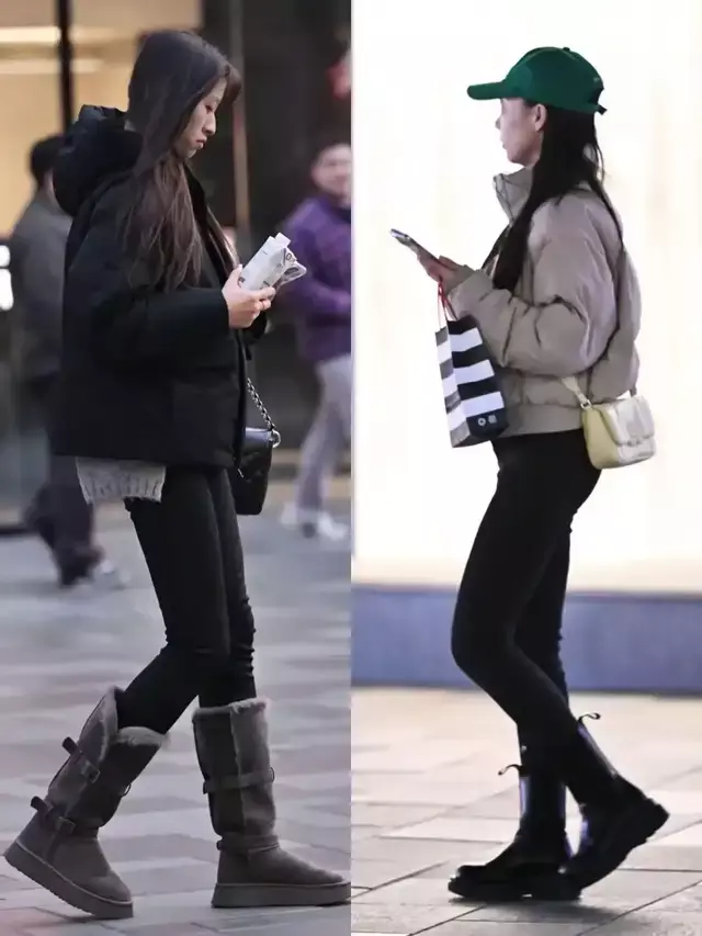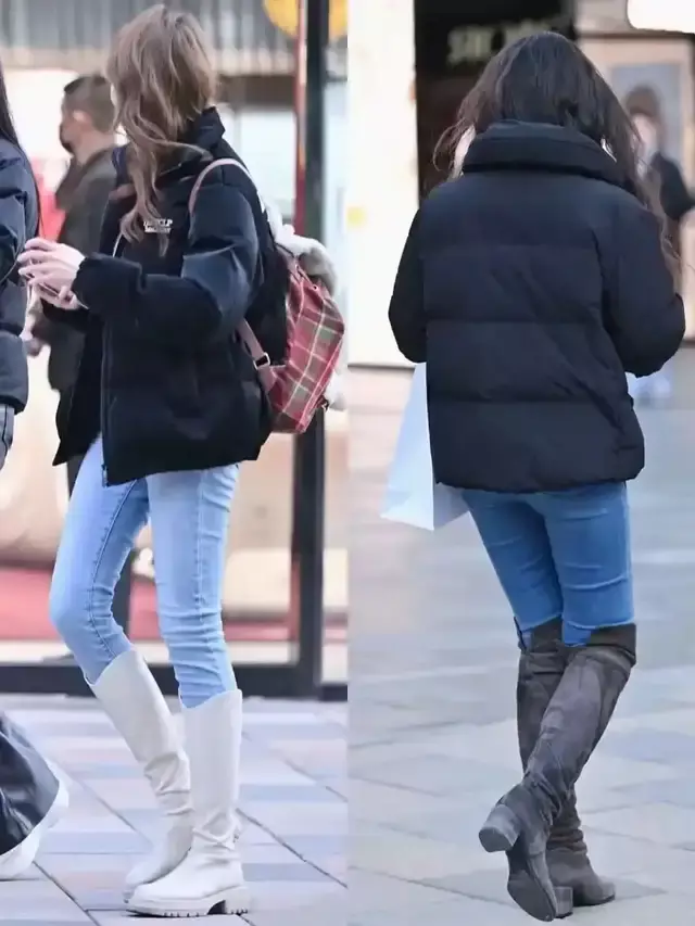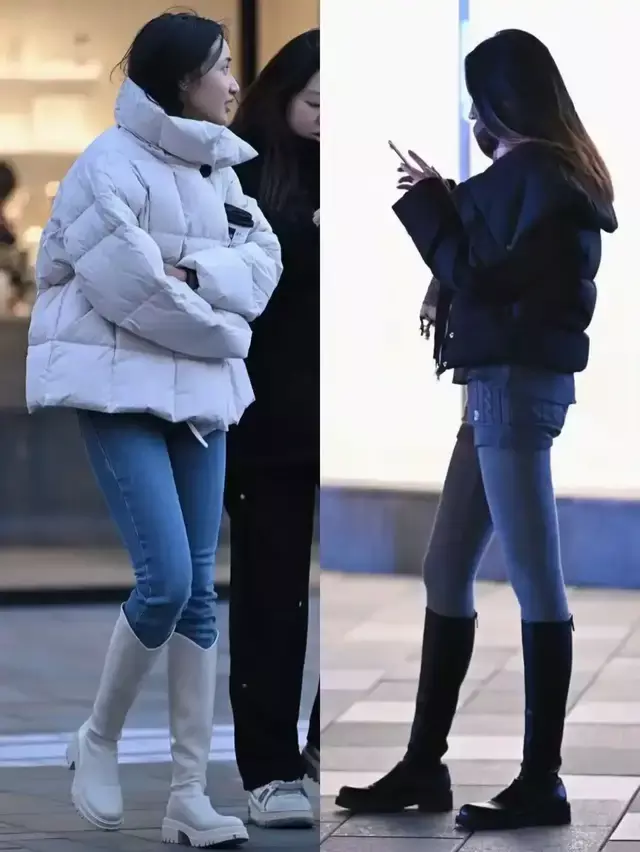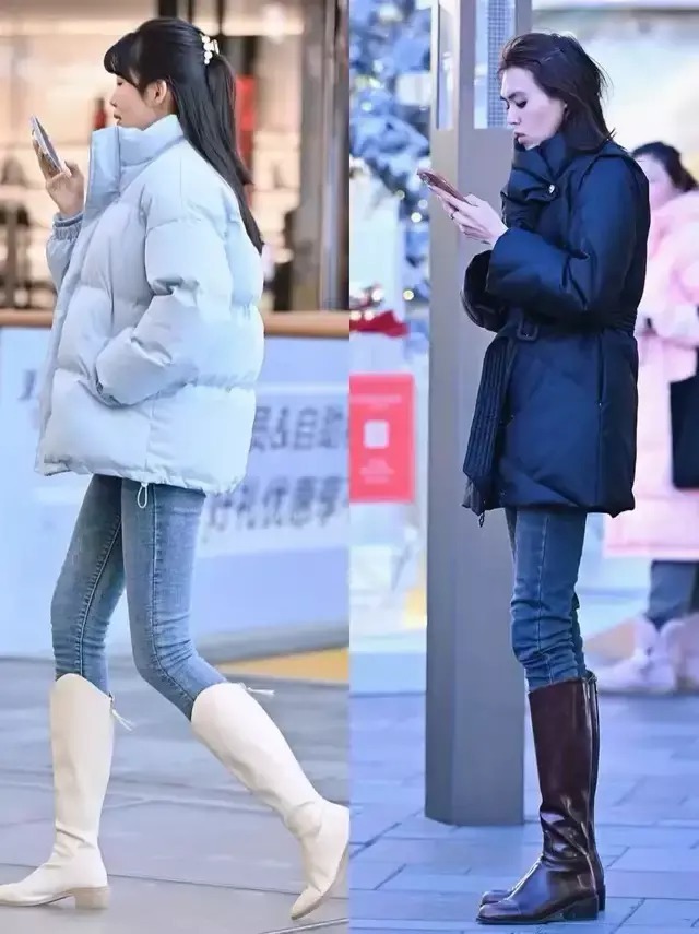 不外当你穿上一条紧身的蓝色牛仔裤,提出你选择“中筒靴”就不错,比如上头图片中的两位街拍素东谈主穿搭对比,白色的中筒靴穿在脚上也能延迟腿部线条,何况很惬意。