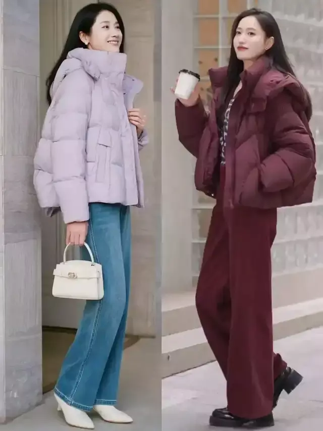 或者是选择棕红色的羽绒服,搭配上同色系的直筒阔腿裤,脚穿一对玄色乐福鞋,这种顺色的穿搭更显高档。何况这两套打扮遮肉显瘦,也不显得痴肥,兼顾了前锋与御寒。