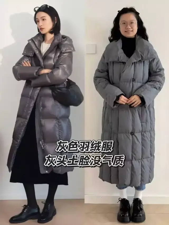 第一章节,穿羽绒服要详确哪些细节,才不会显土?细节①:不穿灰色和自带蓬松感的羽绒服