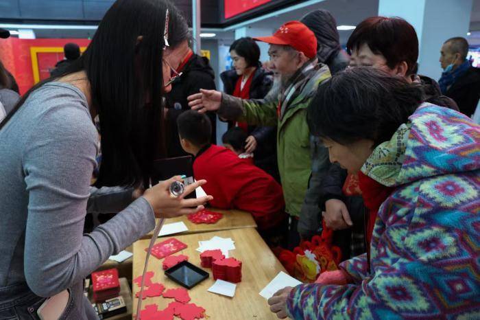 大年月朔,读者参与福字拓印根由互动体验。