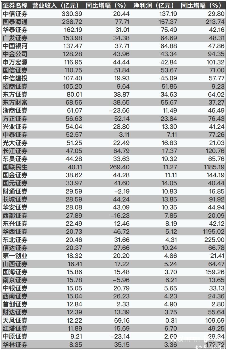 重新部券商来看,中信证券、国泰海通等营收前10名券商,上半年营业收入一谈逾越100亿元,而国泰海通、中信证券两家券商净利润也双双打破百亿大关。
