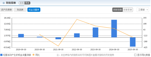 2025年前两个季度,安克蜕变的筹画性现款流齐发挥为净流出,其中1季度为-2.88亿元、二季度为-8.45亿元。到了第三季度,天然筹画性现款流转正达到2.67亿元,但前三季度全体仍为净流出。数据骄气,安克蜕变前三季度筹画性现款流为-8.65 亿元,同比下滑 152.38%。
